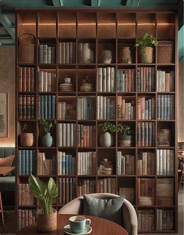 Один из главных акцентов в интерьере –– наш книжный стеллаж, наполненный самыми разными историями.